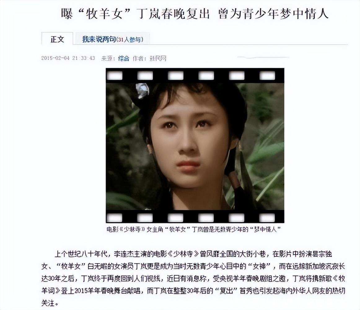 绪言丁岚,过去风华旷世的“牧羊女”,整夜成名,收视过亿的《少林寺》让她成为中国影坛焦点。